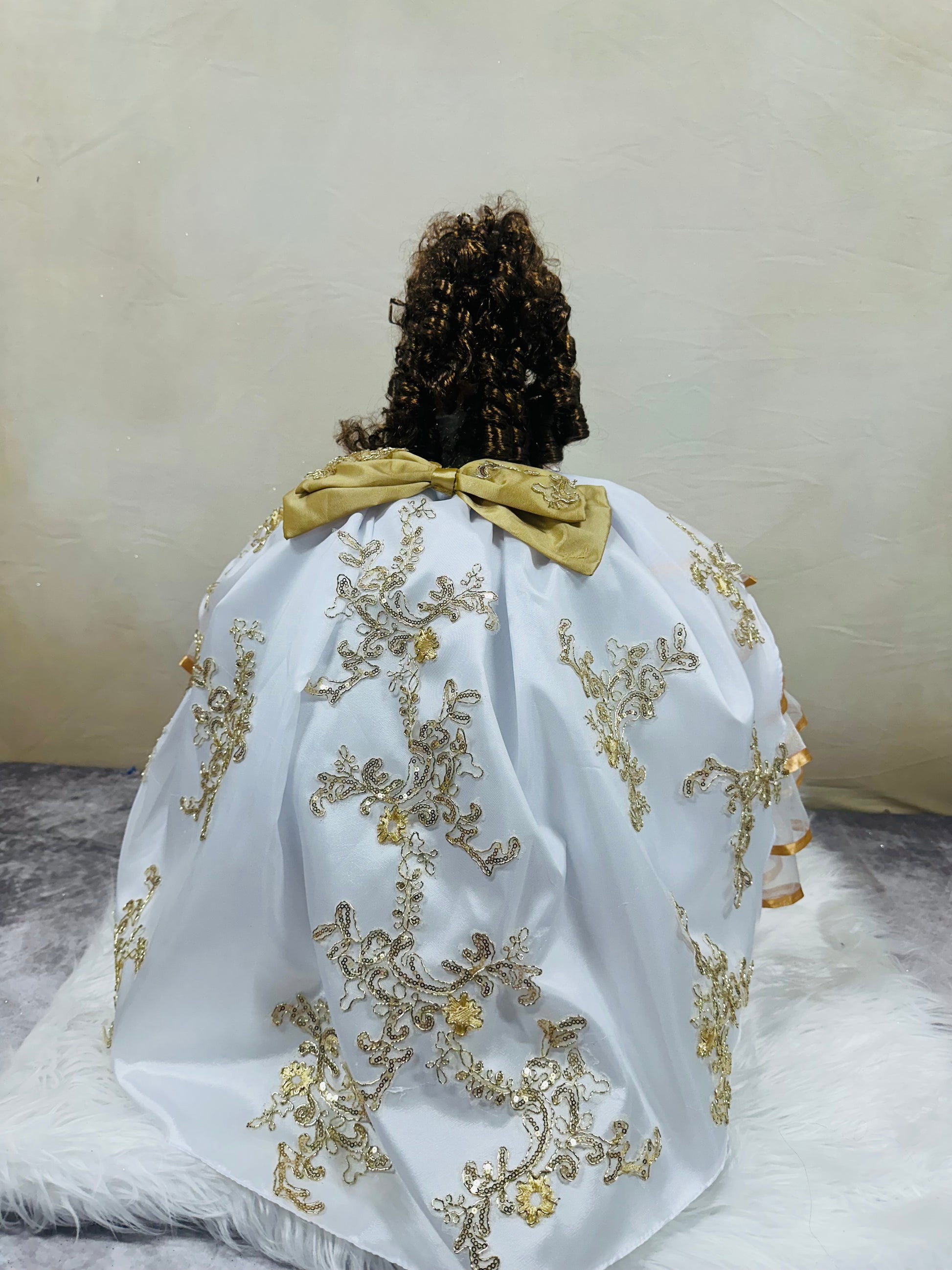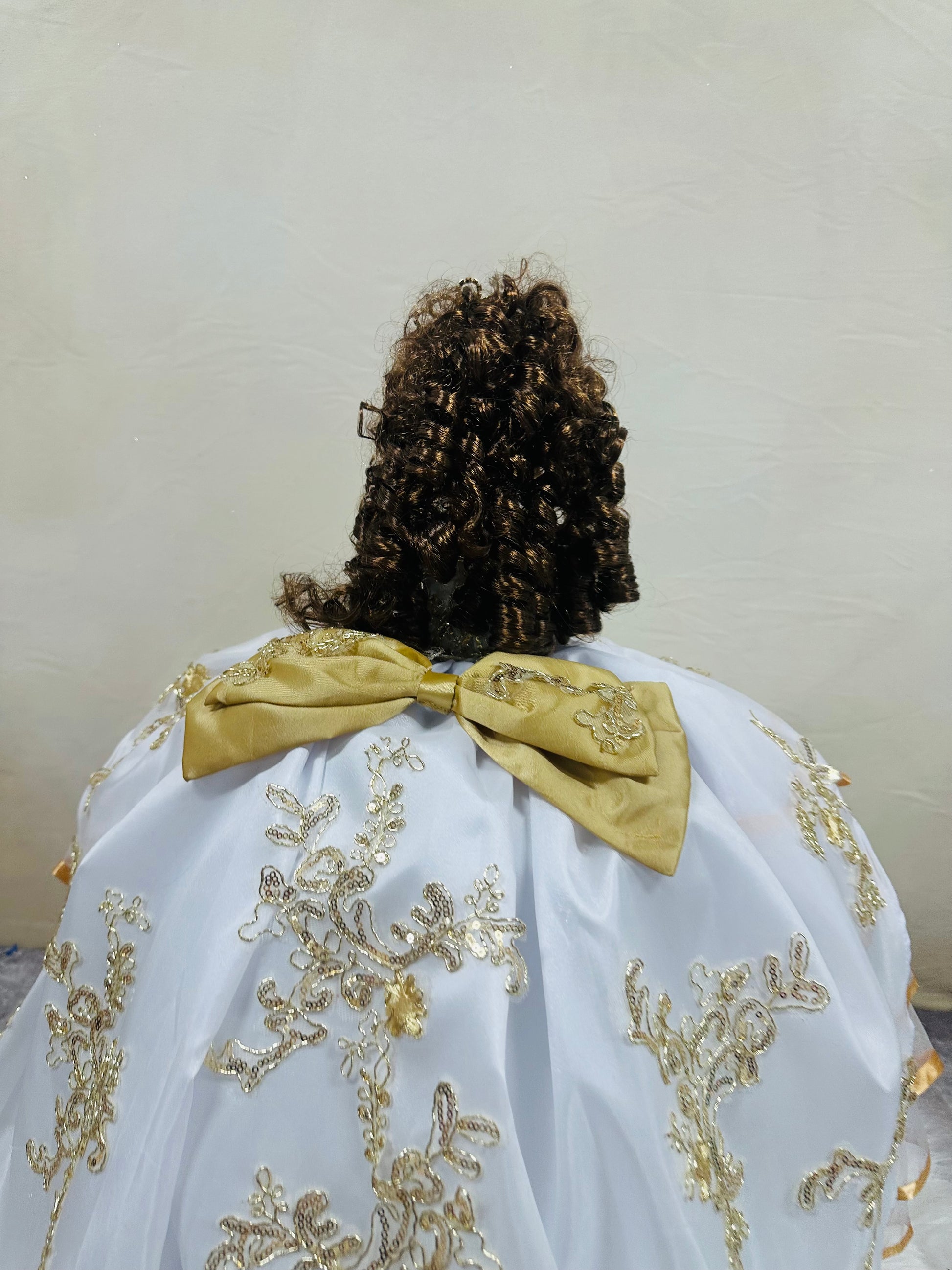This 22" tall ceramic doll is the perfect addition to any Quinceañera celebration, dressed in a custom charro dress. Add a touch of elegance to your special day with this exquisite doll.