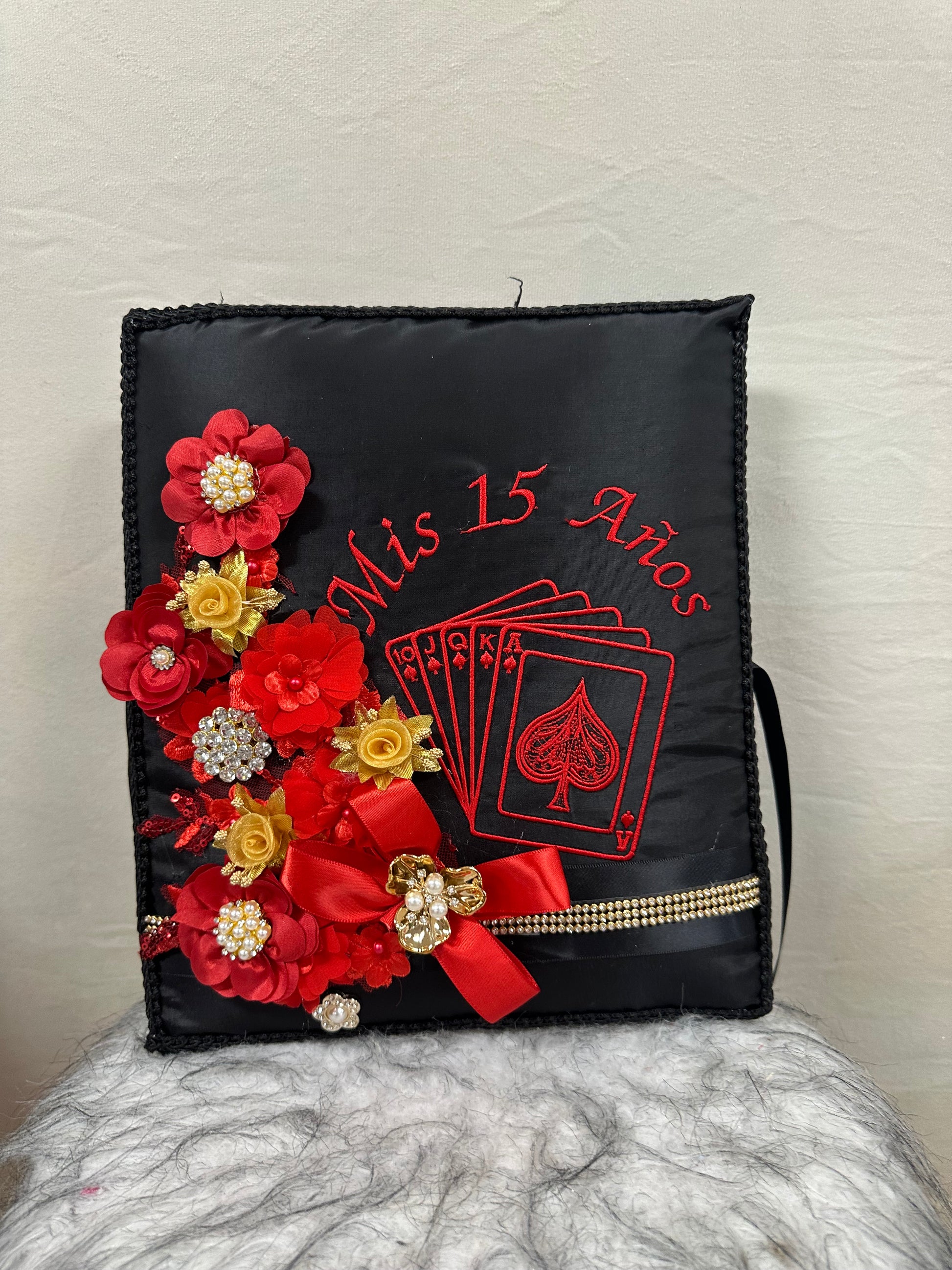 This custom quinceañera guest book is the perfect addition to any event. Available in all colors, it is sure to match your wonderland theme perfectly. Keep track of all your guests and memories with this beautifully designed book.