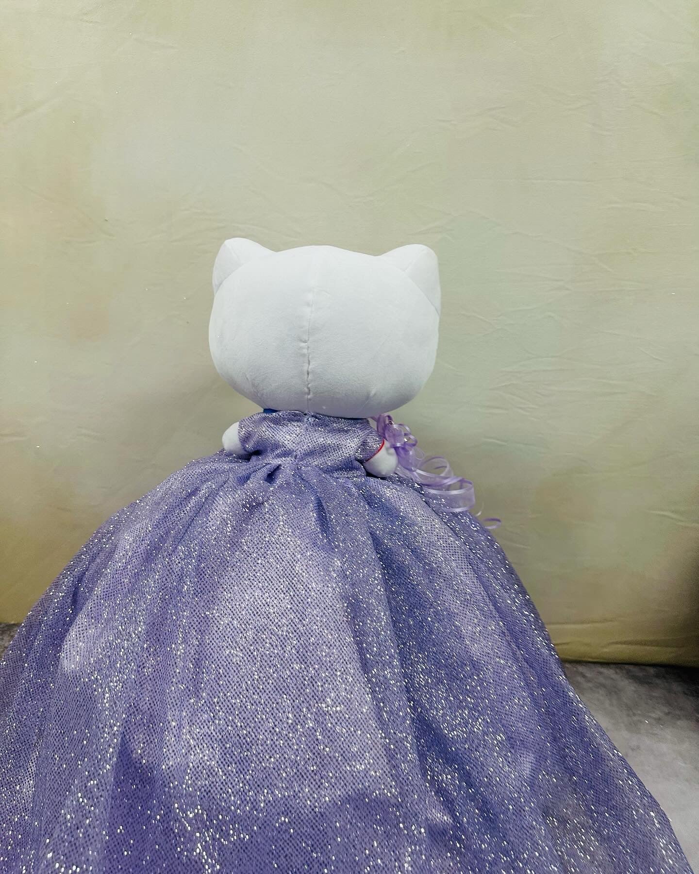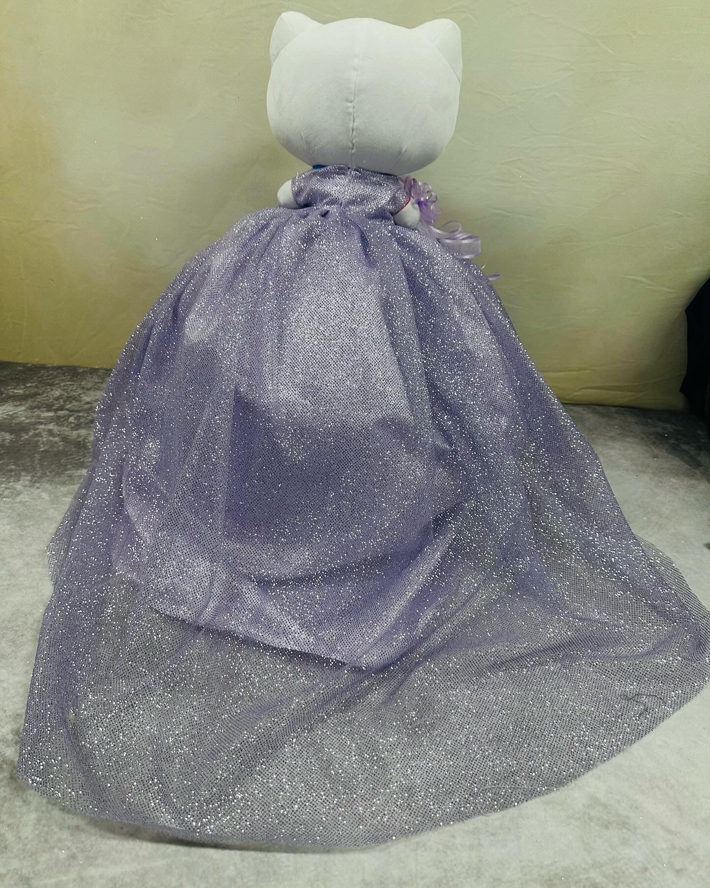 Unleash your inner princess with Hello Kitties custom Quinceañera doll. Standing at 23" tall, this special edition doll wears a gorgeous lilac dress with sparkling glitter tulle. Perfect for fans of Hello Kitty and special occasions alike.