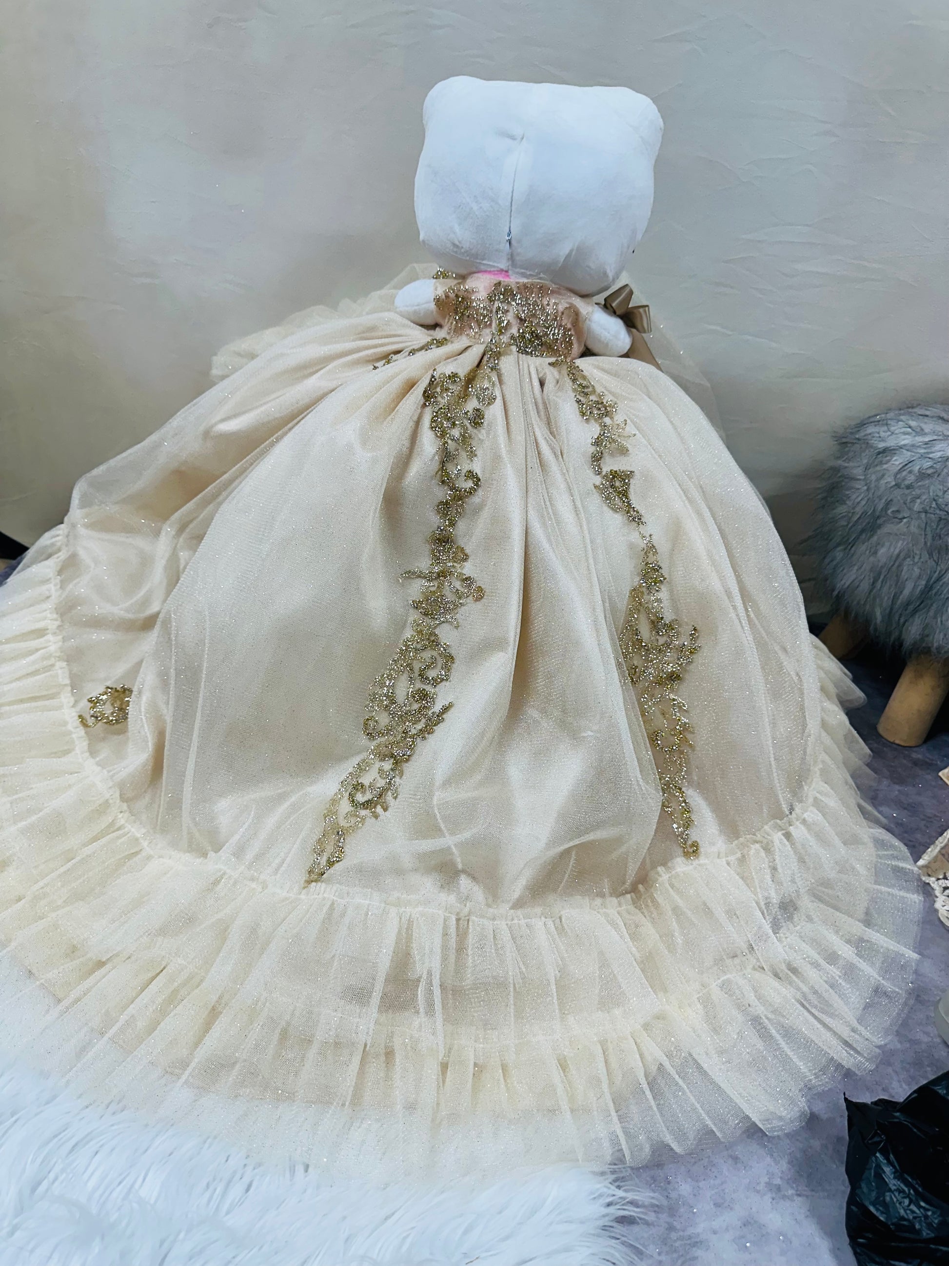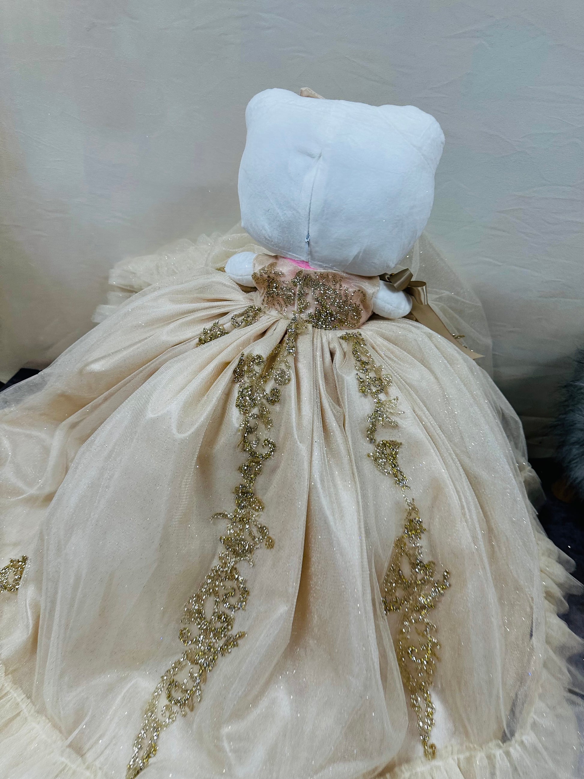 "Customize your quinceañera with the perfect touch of cuteness with our Hello Kitty doll! Available in any color and featuring a 23" crown, this doll will make your special day even more magical."