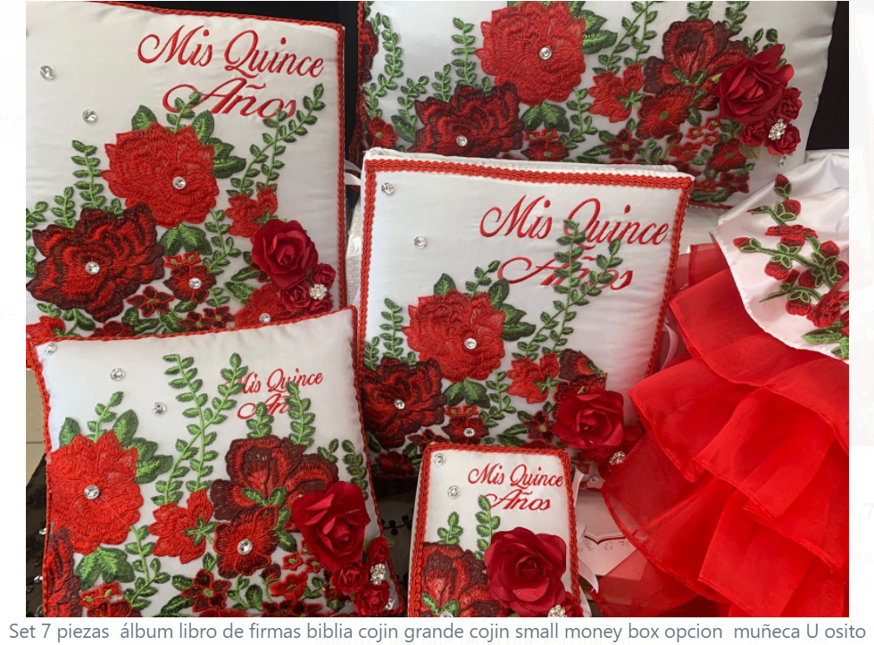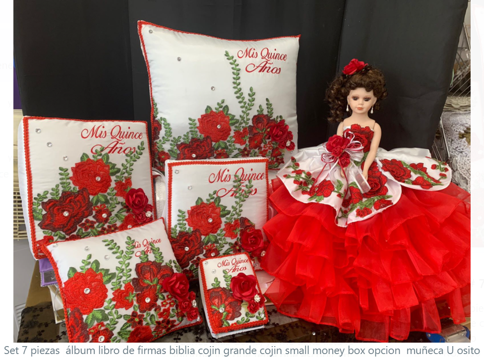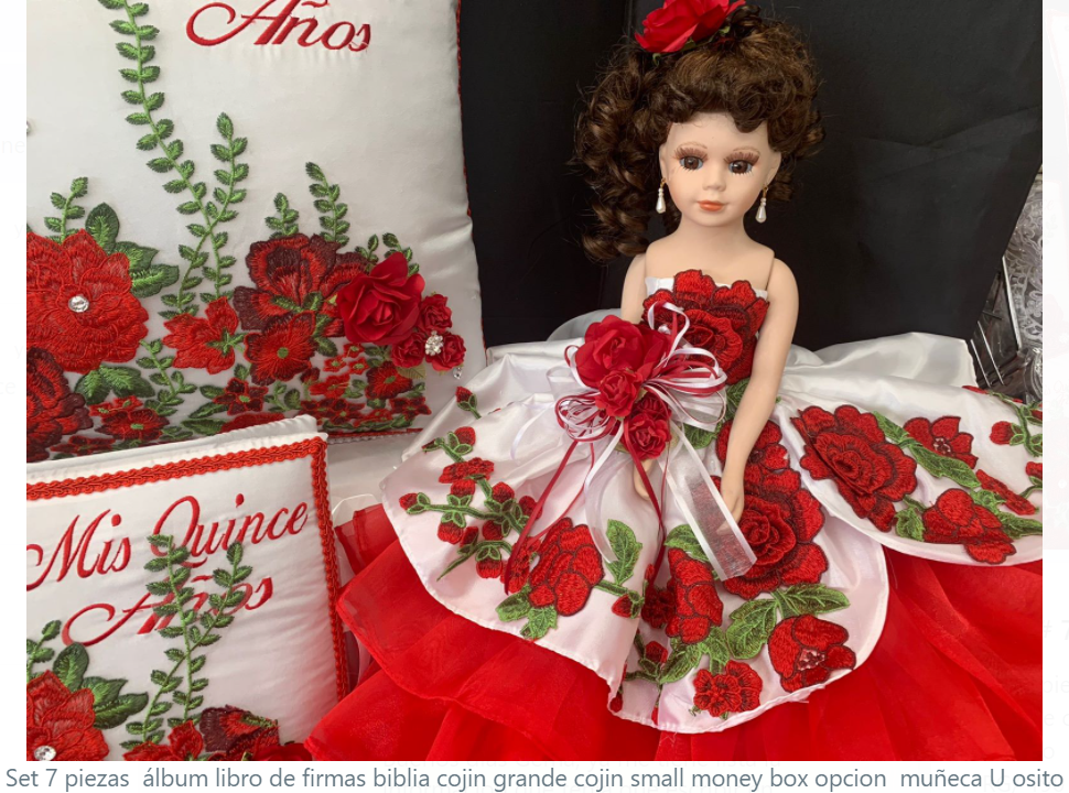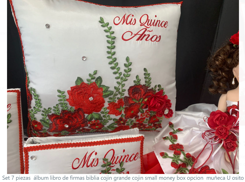 9 Piesas. Album fotos Libro de firmas Biblia católica o cristiana no costó extra Cojin Grande y chico, Muñeca u Osito de más o menos 14 pulgadas y Buzon carton para las tarjetas o El efectivo Ramo charro y corona en oro para algún cambio especial puedes llamar o Tex al 213-842 - 9803