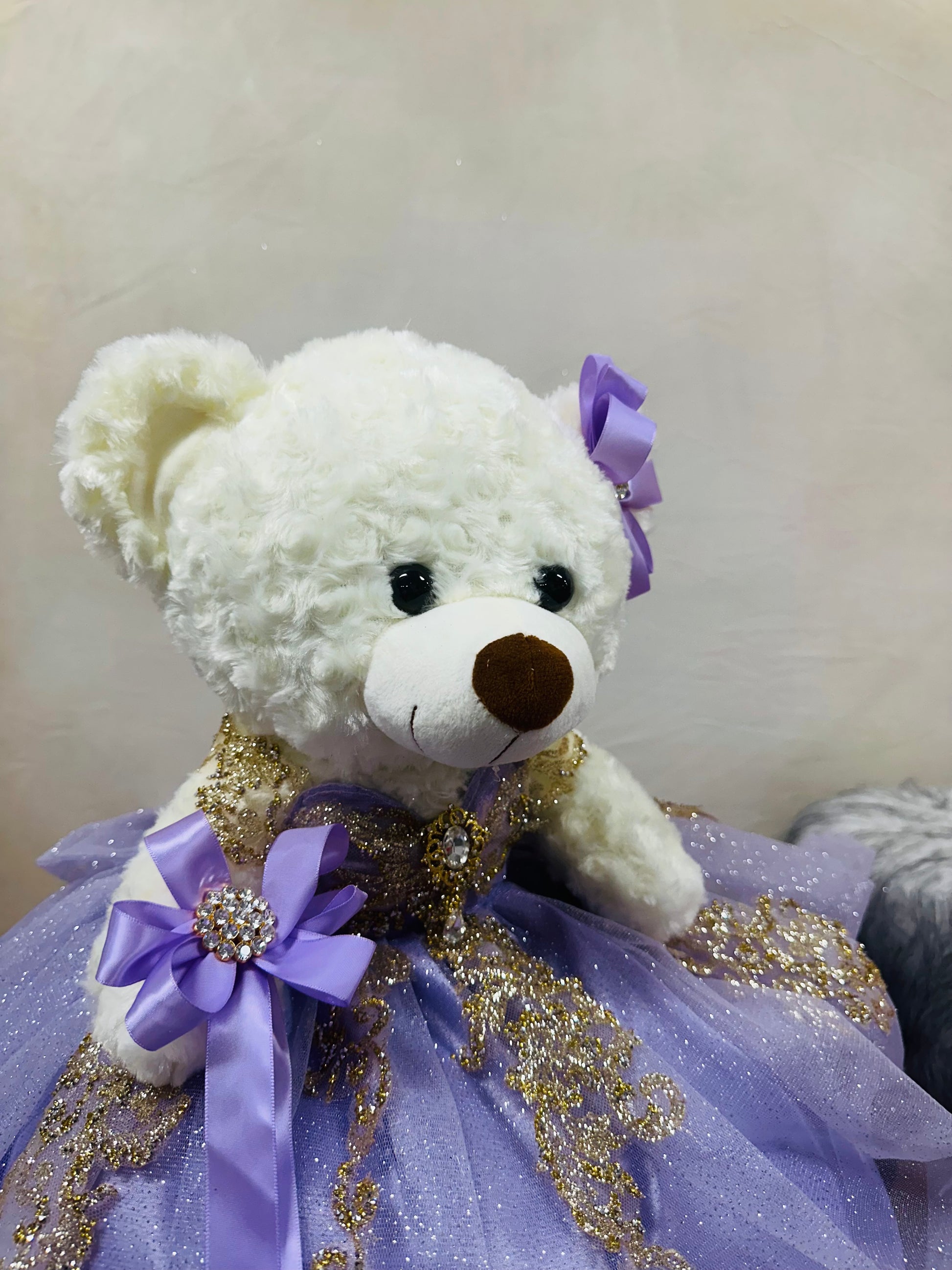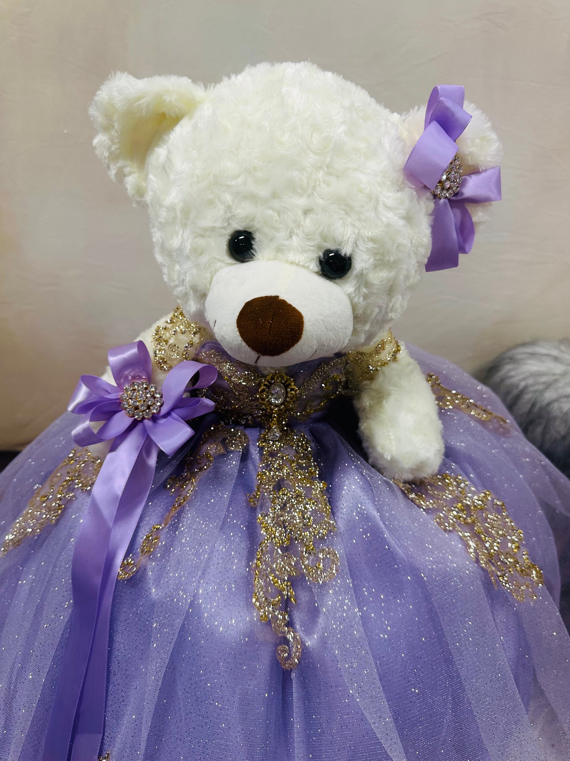 This custom last quinceañera teddy bear is available in any color and perfect for your special celebration. Made from soft and high-quality materials, this 23" bear will make a lasting and meaningful keepsake. Customize it to match your unique quinceañera theme and cherish the memories for years to come.